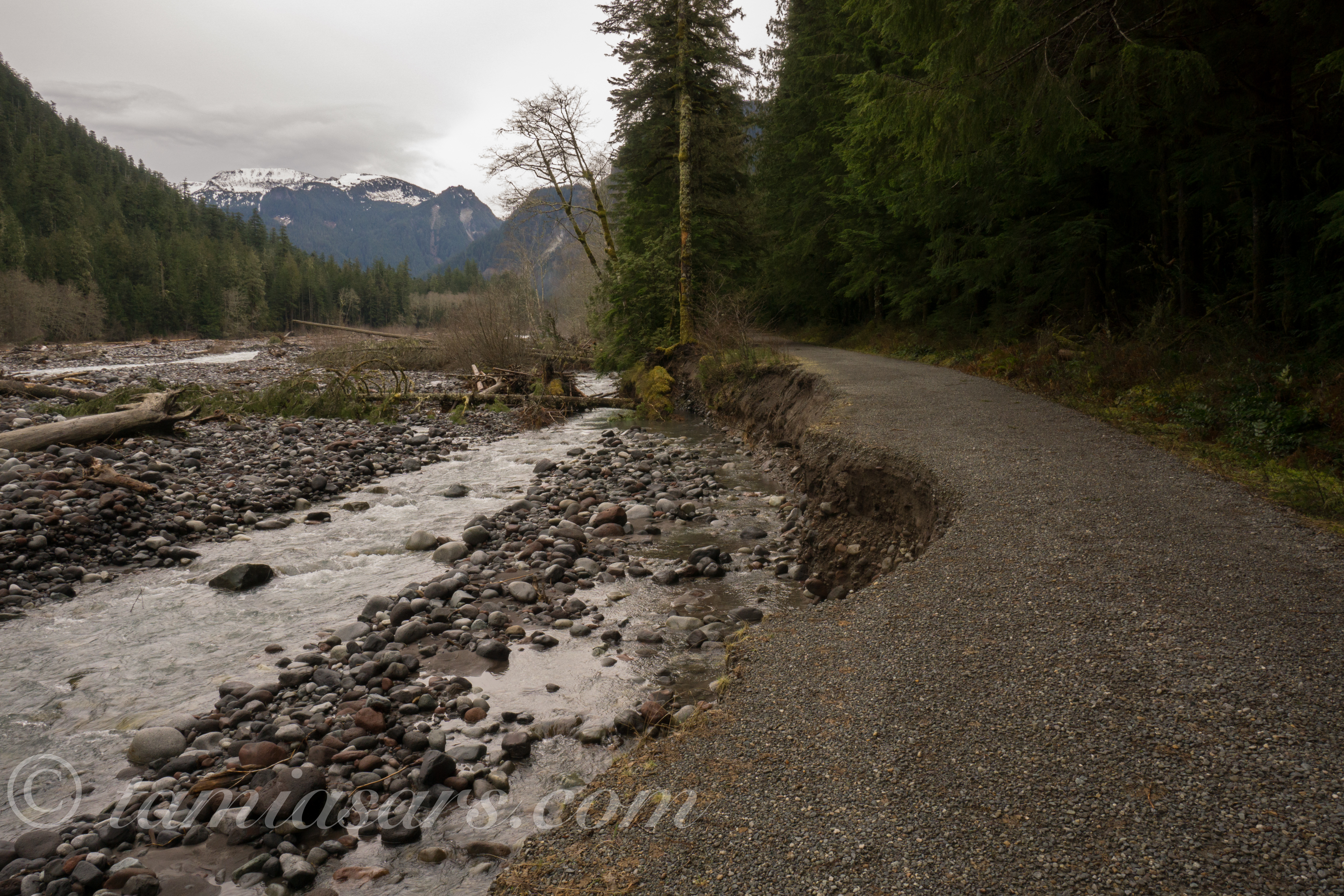 Another stretch of the Wonderland along the riverbank is completely gone and now has become an ankle-twisty game of navigation through colorful rocks and sandy shorelines until you find the trail again on the other side. More casualties were every where I looked. Chenius Falls is missing it’s bridges, and even the Rain Forest Loop at the parking area was missing a bridge.